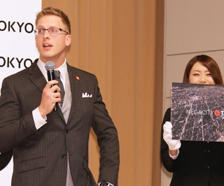 • 厚切りジェイソンさんは「東京は、広いっすわ!」と東京の魅力としてスケールの大きさを表現した作品を、三國清三さんはご自身も好物で「東京が一番」という、うなぎの蒲焼きを、別所哲也さんは「感動が集まる街、東京」の表現としてEXCITING&TOKYOを、1年前に運転免許を取得したというきゃりーぱみゅぱみゅさんはドライブ中の素敵な景色を連想させる作品、最後に舛添東京都知事が「水の都・東京」の象徴として「RIVER&TOKYO」の作品を選定し、それぞれに個性ある作品が紹介されました。
