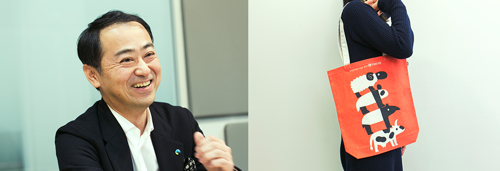 「東京」の魅力は、「伝統と革新が交差しながら、常に新しいスタイルを生み出すことで、多様な楽しさを約束する街。」であること。その魅力を、グッズなど具体的なカタチにすることで、より多くの方に発信していくのが、企業や団体との共同企画商品です。今回は、日本で唯一、「グローバルオーガニックテキスタイルスタンダード(GOTS)」認証及び「国際フェアトレード認証」を取得している、株式会社フェアトレードコットンイニシアティブとコラボレーションした、「Handicap Art&TOKYO」ショルダートートをレポートします。