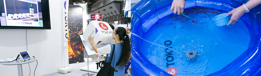さらに、「&TOKYO」ブースでは、東京の価値を表わす「UNIQUE」、「EXCELLENT」、「EXCITING」、「DELIGHT」、「COMFORT」の5つのキーワードを使った「&TOKYOルーレット」や、江戸時代から伝わる伝統的な遊びにちなんだ、「金魚すくい」や「扇投げ」などのイベントも開催。大人も子供もいっしょに楽しめるアトラクションで、終始盛り上がりを見せていました。